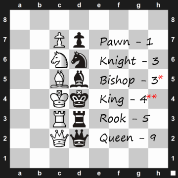 Cependant, la position sur le plateau affecte la mobilité et le rôle des pièces – ces scores ne sont donc que des estimations de la valeur moyenne des pièces.